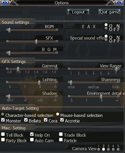 The settings information will displayed like this. You can change sound settings, GFX settings, Auto-target setting and Misc. Setting on here: