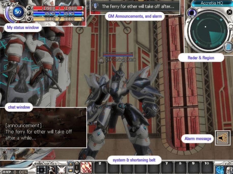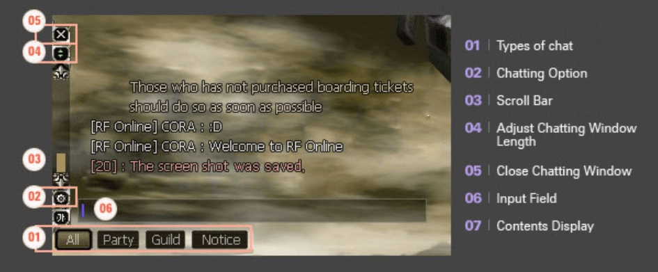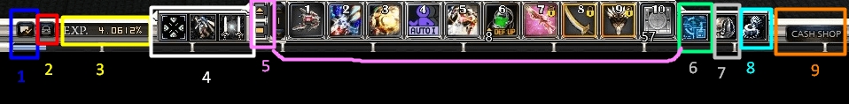 This panel appears when a player needs to be alarmed including trade or party requests, job transfer alarm, order quests, and etc. Point the mouse cursor on the appeared image to read the details about it.