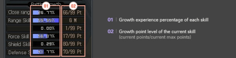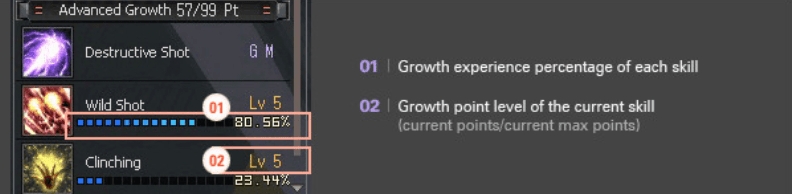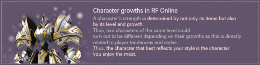Simply put, growth is a quantified notion of how much a character has used a particular skill and it is designed to be used to shape the character, which is a new notion of character growth exclusive to RF Online.
