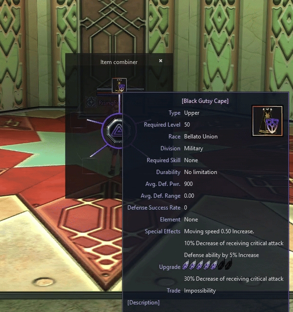 +5 Level 50 Black Gusty Cape = +3 Level 50 Golden Gusty Cape