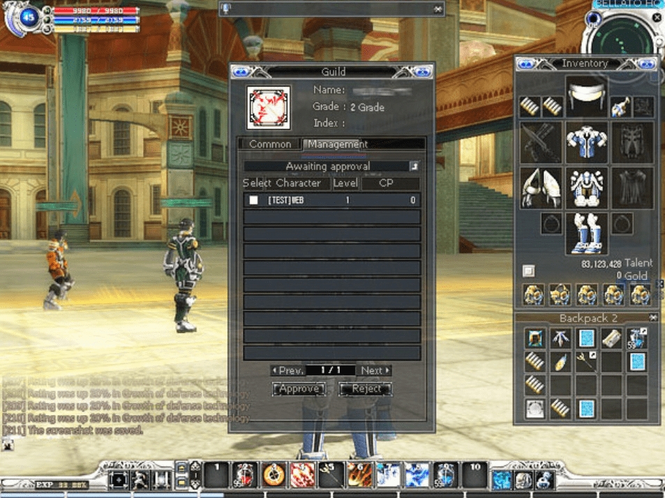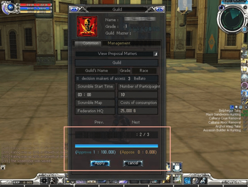 Besides the original members, “the committee” is also able to make decisions in a guild. The committee is consisted of top 10% ranked members and has identical rights as the original members. (unlike the original members, the committee members are subject to change depending on their guild contribution points). The number of committee members may change depending on the size of the guild but there will be at least one at