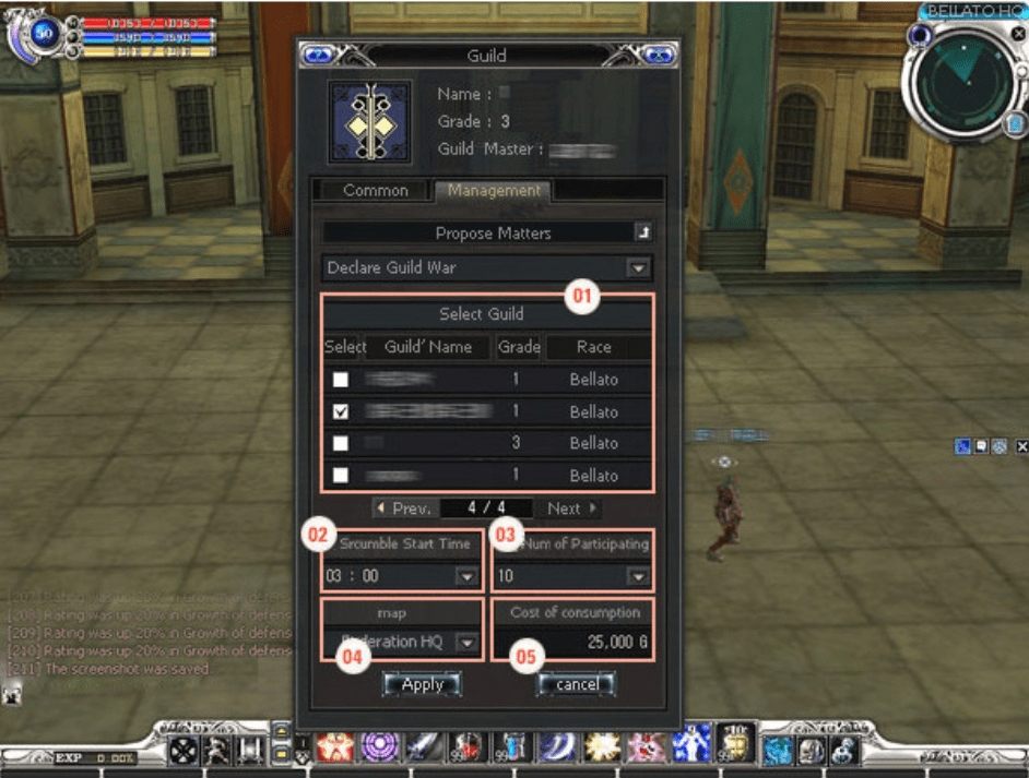 Details regarding the guild war will be proposed. This proposal with be accepted through consultaion of the guild master, first year members, and senior members. The proposals can be viewed in “Declare Guild War” section in the [Maintenance] menu.