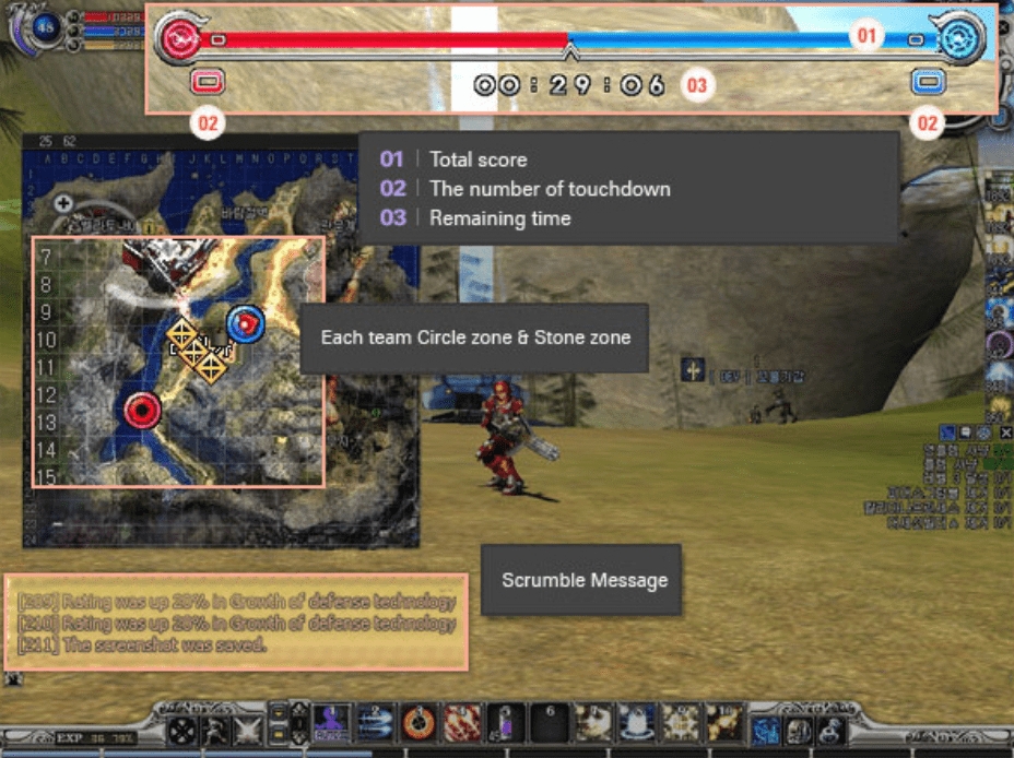 Although RF Online is known for its RvR system, the Circle Zone Scramble is war within the race (PK system) to conquer their territories. There are various battle systems from bloody battles to battles that mimic American Football. Through this, each guild can see how strong and be a part of the E-sports phenomenon.